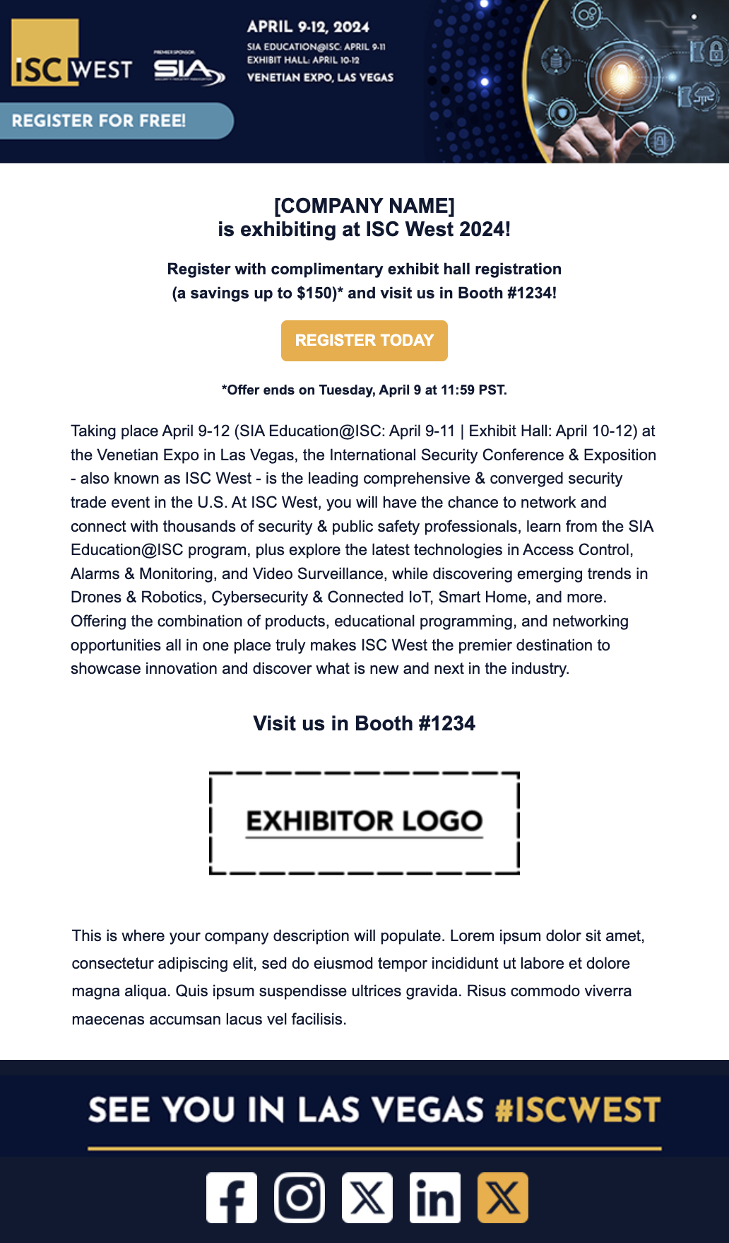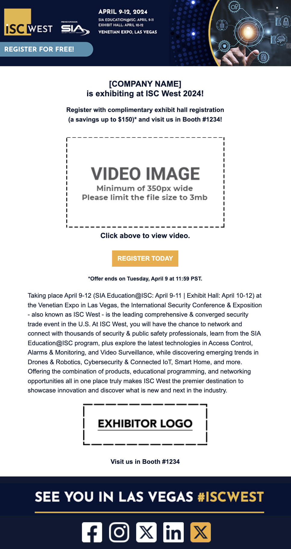 Four email templates have been created to promote your booth. Preview the templates below, then scroll down further to add your custom content, and select to download the emails to send on your own, or upload a qualified list and have Nvytes send the emails on your behalf!